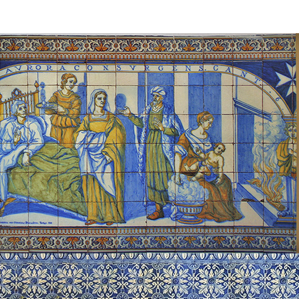 Estas composiciones destacan por su complejidad narrativa y por la calidad de la pintura cerámica. Las figuras se integran en composiciones equilibradas, con un dibujo preciso y una gama cromática que combina tradición para acomodarse al lado de otros zócalos más antiguos.