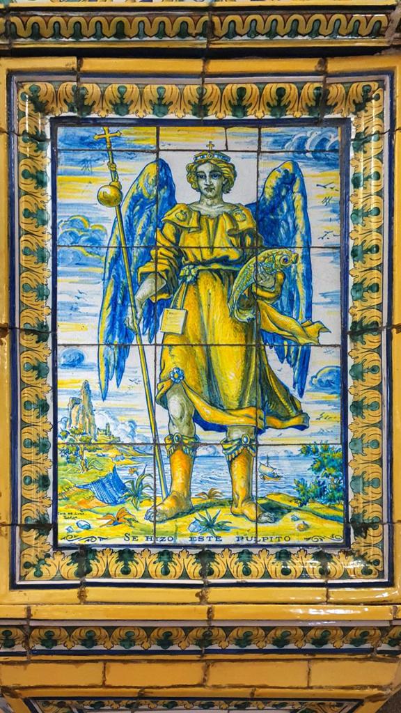 Entre las obras más singulares realizadas por el taller de la familia Ruiz de Luna en la Basílica de Nuestra Señora del Prado, en Talavera de la Reina, destaca el púlpito cerámico del lado de la Epístola, realizado en 1954.