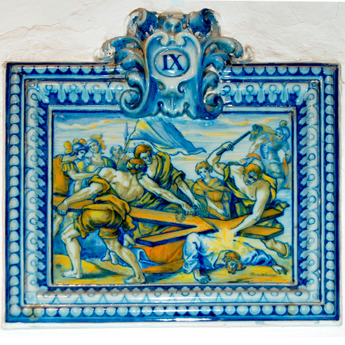 Uno de los elementos más interesantes de estos paneles es el perfilado de las figuras en azul, una técnica que reproduce el estilo de los antiguos azulejos renacentistas de Talavera. En siglos posteriores se generalizó el uso del manganeso oscuro, de tonalidad morada o negra, pero Ruiz de Luna optó aquí por recuperar la estética más antigua.